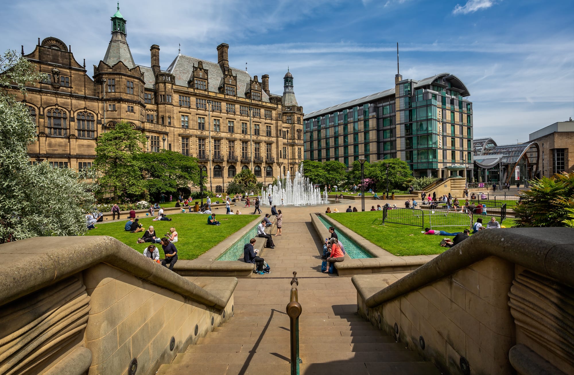 With its stunning water features, cascades, and war memorials, it forms the central part of a spectacular walkway connecting Sheffield Railway Station to other attractions like the Winter Garden and Millennium Galleries.