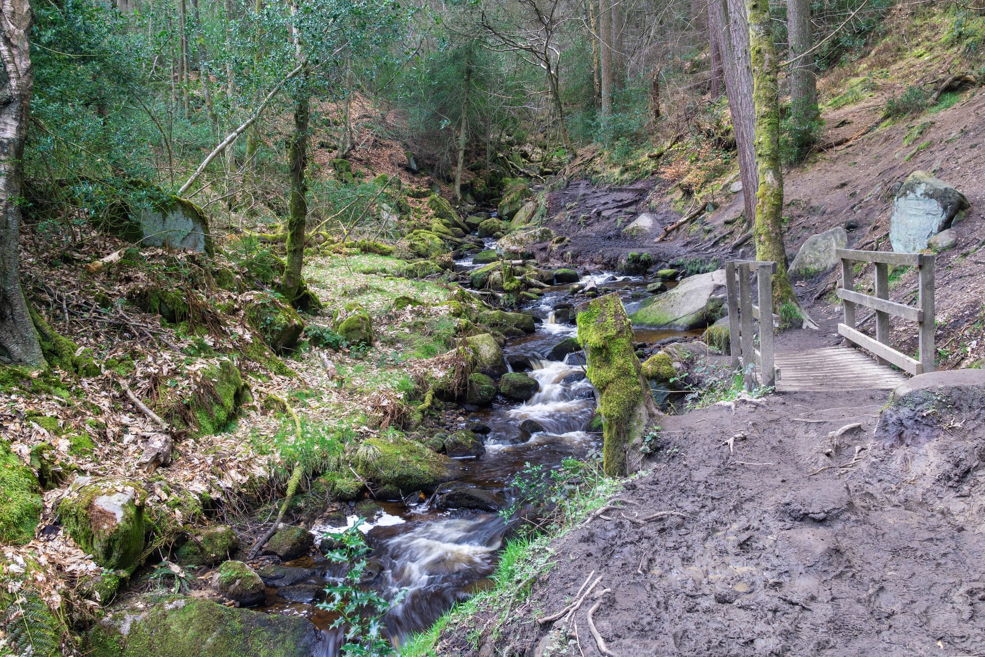 The main path follows the brook upstream, providing gorgeous views of the water as it flows over moss-covered rocks. This tranquil setting makes it perfect for a peaceful day out in nature without spending a penny.