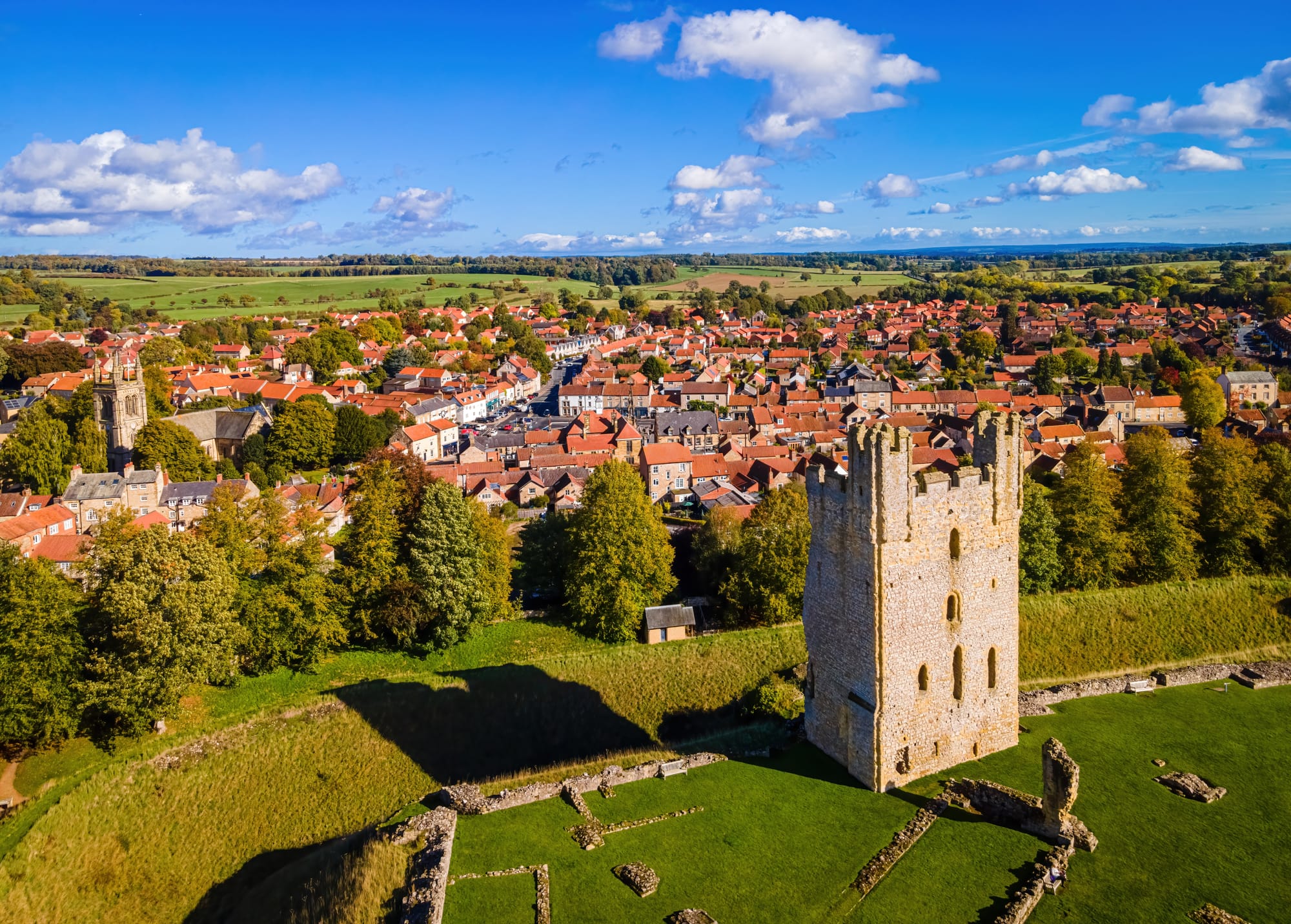 - Helmsley Castle features well-preserved ruins and interactive exhibitions managed by English Heritage, showcasing its medieval fortifications and residential structures.