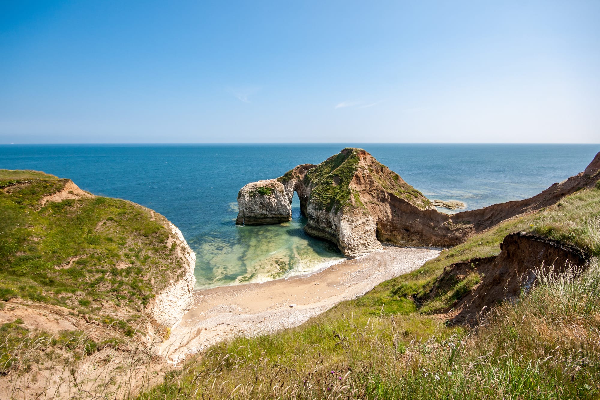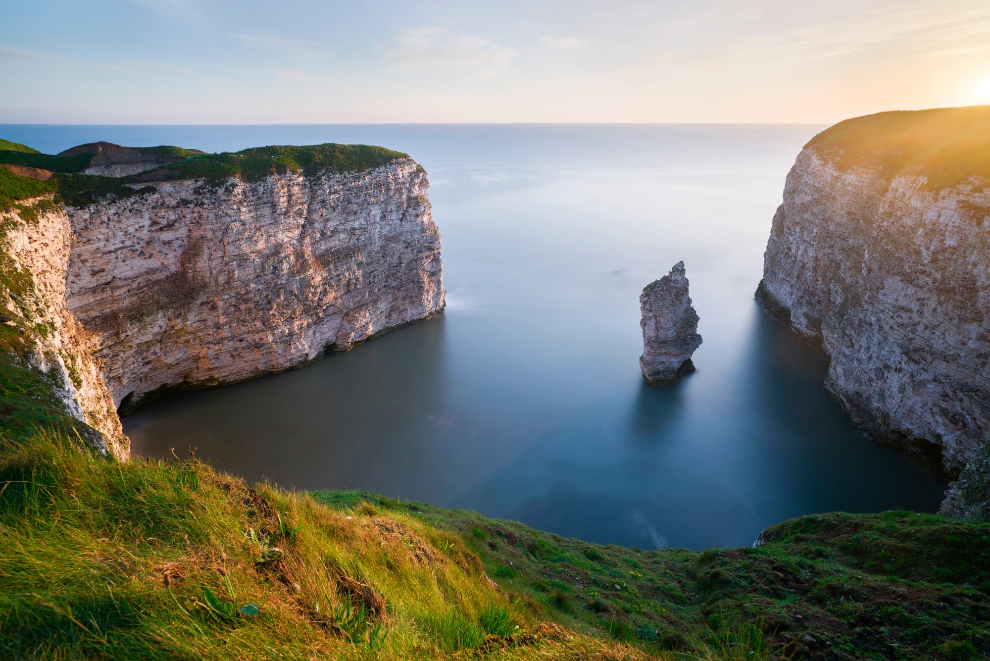 Flamborough Head, located in East Yorkshire, is renowned for its dramatic white chalk cliffs, stunning sea stacks, and rich maritime history.